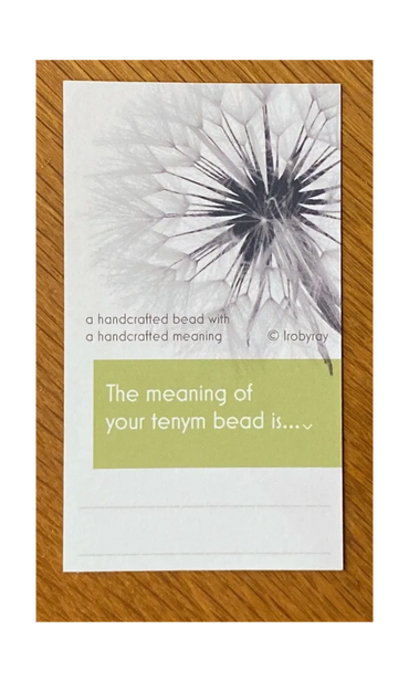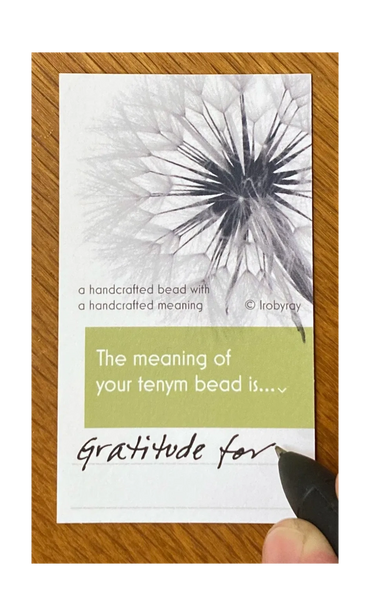 Derived from the words time, energy, meaning, and memory, tenym beads are a reminder or resource, a message or pause.